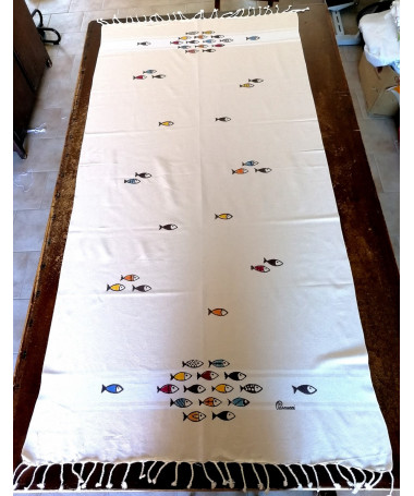 Comodissimo telo da mare o pareo con frange da entrambe le estremità.